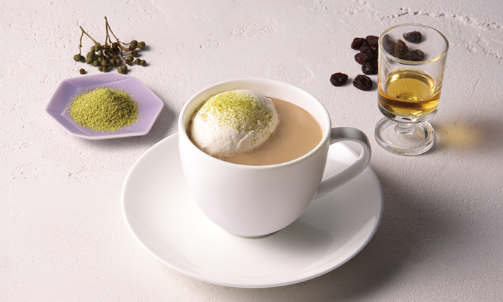 2020年に新発売し、2022年から毎年期間限定で発売しています。天日干しで乾燥し、旨みを凝縮させた「有機栽培レーズン」を、芳醇な香りの「ジャマイカ産ラム酒」に漬けて丁寧に作った「ラムレーズン」。そんな「ラムレーズン」を、「ミルク珈琲」とあわせ、さらに生クリームと、レモングラスのような爽やかな香りでスパイシーな「和歌山県産ぶどう山椒」をトッピングしました。ラムレーズンの深いコクとぶどう山椒の香りで、五感に響く冬のご褒美ドリンクに仕上げています。トッピングの「ぶどう山椒」が少しずつ溶けていくため、香りや味わいの変化もお楽しみいただけます。