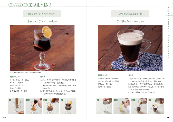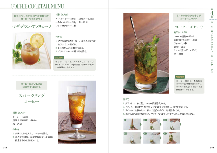 本書では、ホットメニュー、アイスメニューはもちろん、アルコールを合わせた大人なメニューや、エスプレッソを合わせたメニューを、38種収録しています。SNS映えも間違いなしの、ご自宅の食卓を彩るアレンジレシピをセレクトしました。
