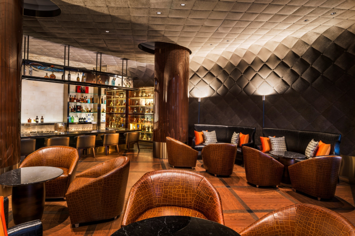 “浮揚感”漂う2フロア吹き抜けの「滝」をイメージしたガラスアートに囲まれた、カクテルラウンジ・バー。圧倒的スケール感のガラス窓からは、刻一刻と表情を変える都心の景色を万華鏡のようにお楽しみいただけます。