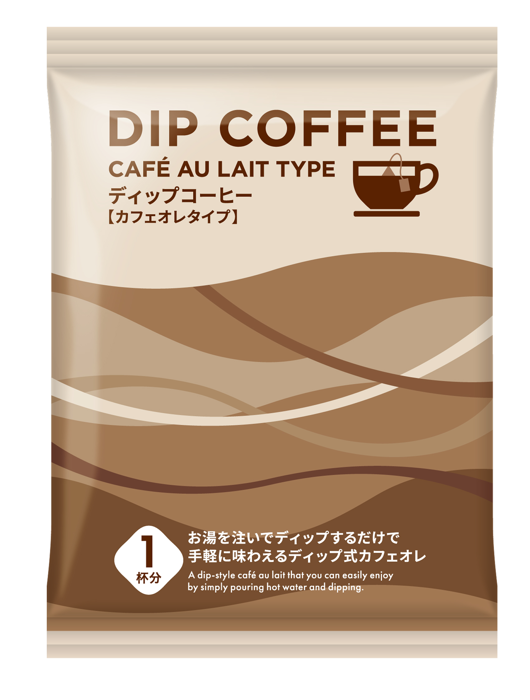 レギュラーコーヒー本来の香りを引き立てる専用のクリーミングパウダーを、本商品のために一から選定。牛乳やポーションミルクを別途用意する必要がなく、お湯を注ぎディップするだけで上質なカフェオレが完成します。
