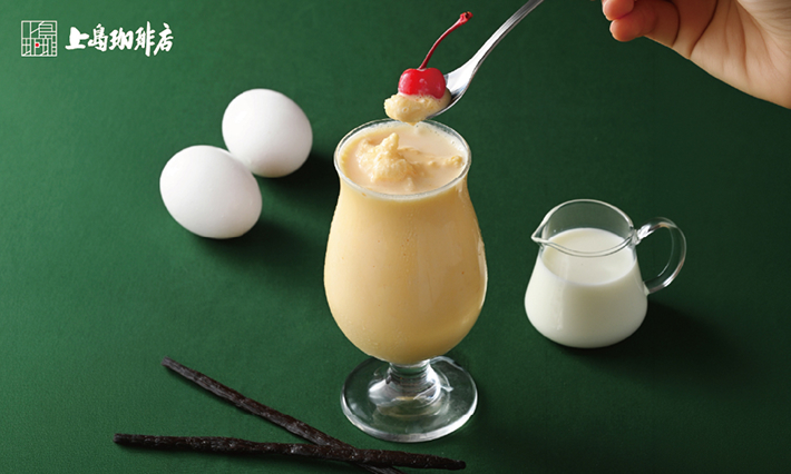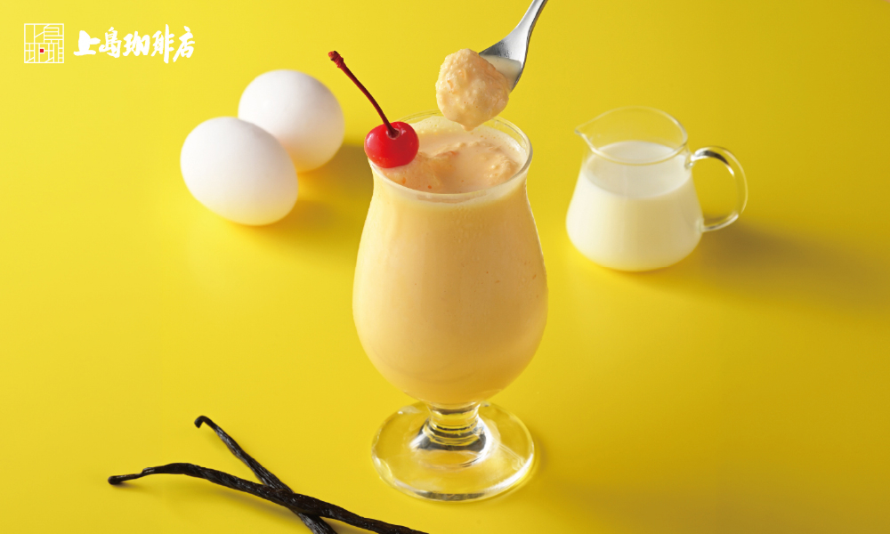 ミルクセーキは、19世紀末のアメリカで誕生した、牛乳・卵・砂糖を混ぜて作る飲料をルーツとしています。上島珈琲店では、昭和の喫茶店を思わせる懐かしさと温かみのある味わいを重視し、昔ながらの味わいを再現するためにバニラエッセンスを使用することで、牛乳と卵のやさしい甘みとバニラの香りが調和し、懐かしさの中にも上品さを感じられる味わいに仕上げています。