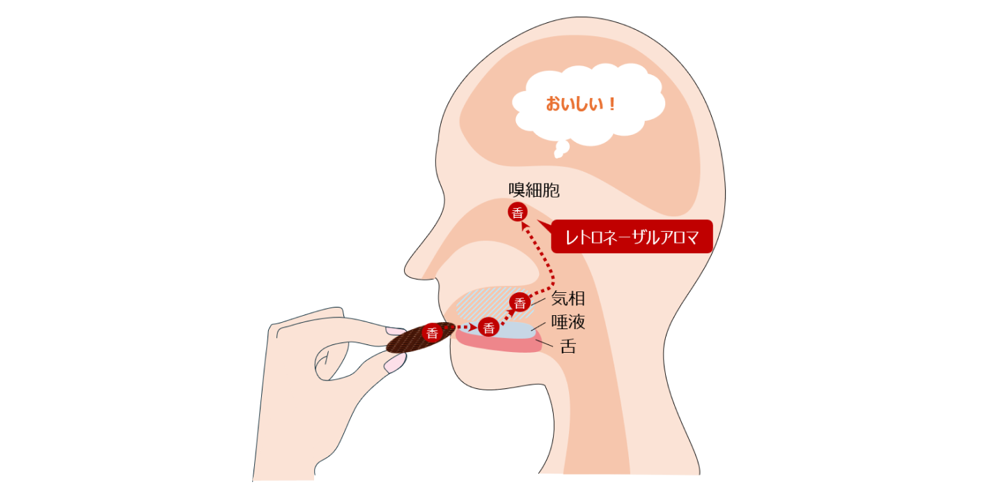 食べ物や飲み物を口にしたときに揮発成分が喉の奥から鼻へ抜けて感じられる香りのこと。
