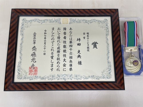 6月21日に開催された「喫茶サービス部門」では、特例事業部/オフィスサービス課の坪田 吏央さんが「金賞」を受賞され、10月に名古屋で開催される全国大会へ出場予定です。