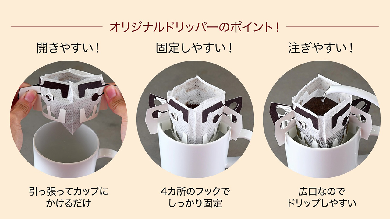 「開きやすさ」「組み立てやすさ」「セットのしやすさ」「お湯の注ぎやすさ」を満たすドリッパーです。