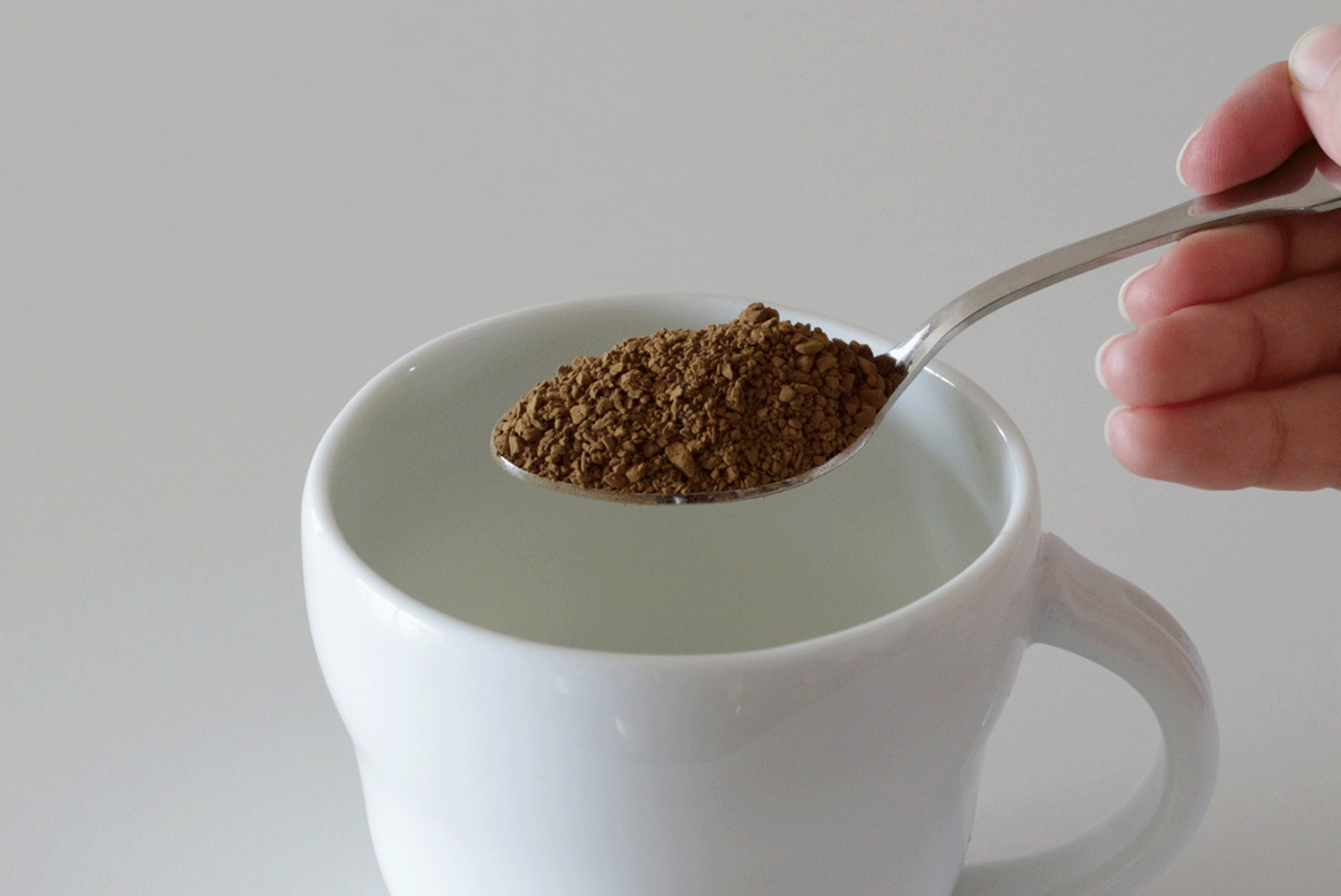 1899年、日本人の化学者、加藤博士によって発明された。1901年の全米博覧会で発売されたのが始まりで、第二次世界大戦後、急速に普及したと言われる。コーヒー液から水分を除いて、粉末または顆粒状にしたもので、湯を加えると溶解して再び液体のコーヒーになる。「ソリュブルコーヒー」とも言う。